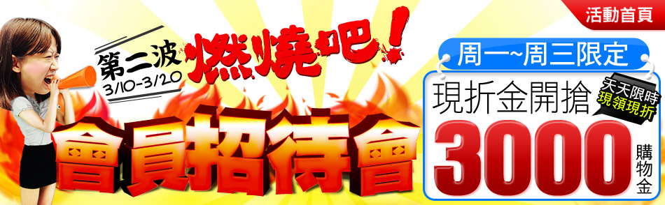 1、活動期間登錄指定頁面,免消費就送您3000購物金(50*4張+100元*4張+200元*2張+1000元*2張),購物金隨機送出,每人(帳號)每天限領一次,限量1000份發送,送完為止,購物金限領取當天使用完畢。
